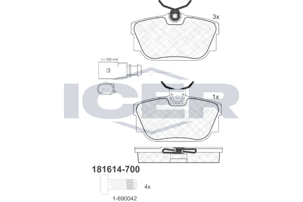 Тормозные колодки Icer задние для Volkswagen Transporter T4 1990-2003. Артикул 181614-700