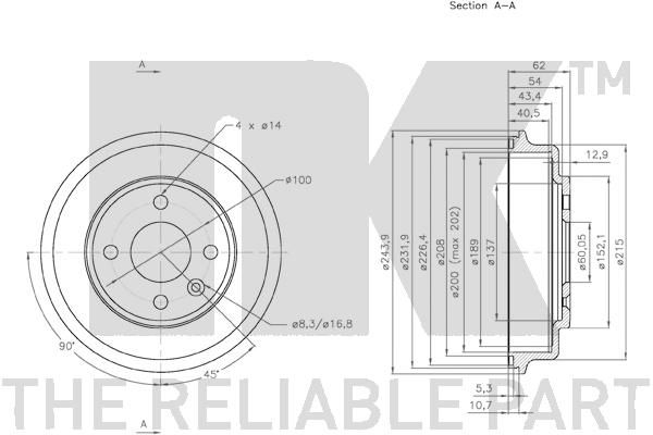 Тормозной барабан NK задний для Chevrolet Cobalt II 2013-2026. Артикул 253630