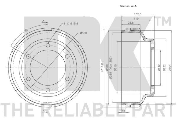 Тормозной барабан NK задний для Ford Transit VI 2000-2006. Артикул 262512
