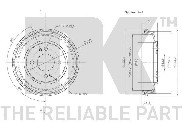 Тормозной барабан NK задний для Hyundai Getz I 2002-2010. Артикул 253408