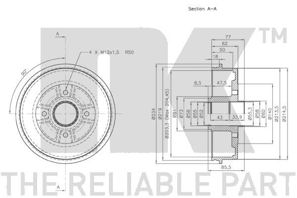 Тормозной барабан NK задний для Renault Laguna I 1995-2001. Артикул 253909