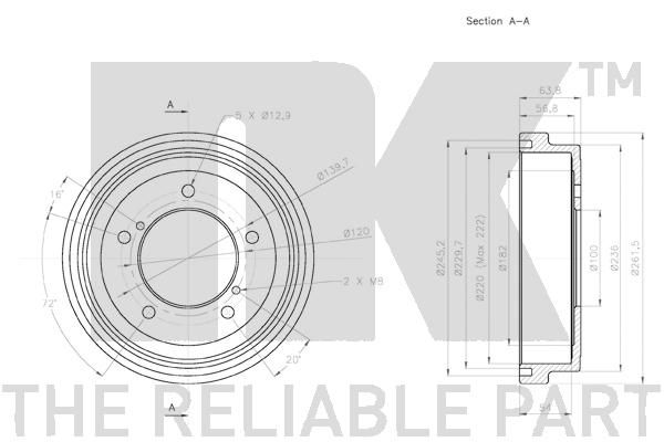 Тормозной барабан NK задний для Suzuki Jimny III 1998-2019. Артикул 255212