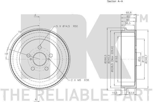 Тормозной барабан NK задний для Toyota Aygo II 2014-2026. Артикул 251911