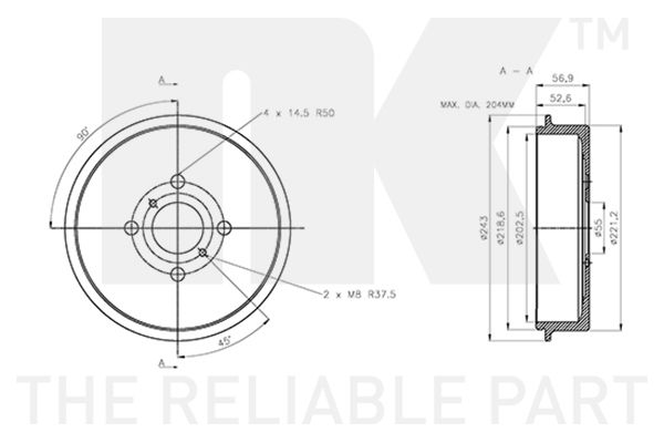 Тормозной барабан NK задний для Toyota Carina VII (T210) 1996-2001. Артикул 254510