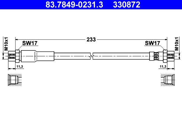Тормозной шланг ATE задний для SEAT Altea I 2004-2015. Артикул 83.7849-0231.3