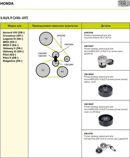 Натяжной ролик (натяжитель) приводного клинового зубчатого ремня Trialli. Артикул CM 5731
