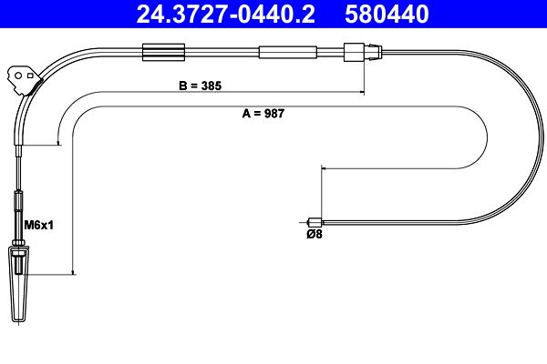 Трос ручника (тросик ручного тормоза) ATE передний для Mercedes-Benz A-Класс I (W168) 1997-2004. Артикул 24.3727-0440.2