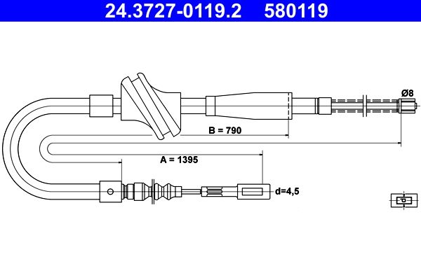 Трос ручника (тросик ручного тормоза) ATE задний для Audi 100 III (C3) 1982-1990. Артикул 24.3727-0119.2