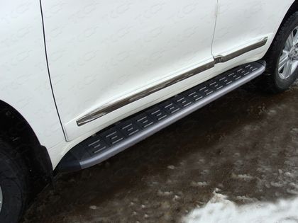 Пороги алюминиевые ТСС с пластиковой накладкой 1720 мм для Toyota Land Cruiser 200 рестайлинг 2015-2021 Карбон черные. Артикул TOYLC20015-13BL