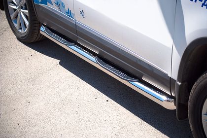 Защита порогов RusStal труба d76 с накладками (вариант 1) для Volkswagen Tiguan Sport & Style (Trend & Fun) 2011-2016. Артикул VGT-0009921
