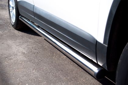Пороги РусСталь производятся из полированных стальных труб, отделка из термостойкого, ударопрочного АВС-пластика. Для того, чтобы обеспечить защиту кузова, удобство пассажиров при посадке и усилить эстетическую привлекательность вашего транспортного средства, компания разработала разнообразные варианты этого навесного оборудования с учетом особенностей геометрии авто конкретной марки. Приятно и то, что во многих случаях на один автомобиль производитель предлагает несколько моделей, и Вы можете выбрать ту, которая больше соответствует вашему вкусу. В ассортименте Руссталь несколько видов порогов, различающихся диаметром и формой: