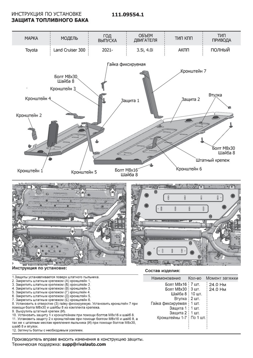 | Комплектация | защита - 1 шт., комплект крепежа, инструкция по установке, упаковка |
