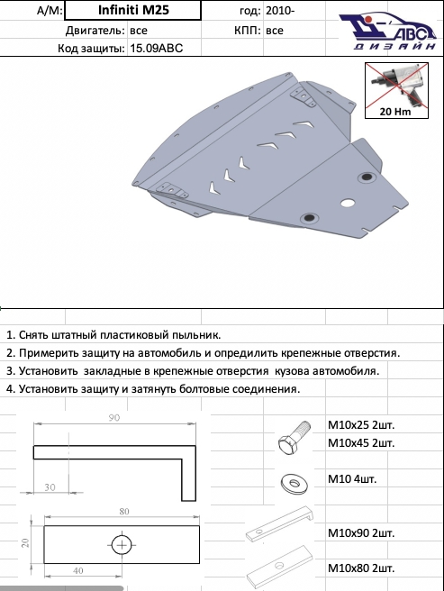 Защита алюминиевая АВС-Дизайн для картера Infiniti M 25 2010-2026. Артикул 15.09ABC