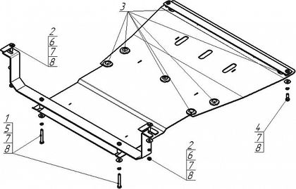 | Cтальная защита "Мотодор" изготавливается из горячекатаной стали, толщиной 2 и 3 мм и из нержавеющей стали, толщиной 3 мм. Изделия покрываются черной порошковой краской, обладающей высокими защитными механическими свойствами.Комплектуются оцинкованным крепежом 8.8 класса прочности. Многие модели имеют отверстия для технического обслуживания двигателя (смена фильтров, слив масла). Элементы крепления защит для внедорожников (кронштейны) усилены ребрами жесткости. | ![]() |