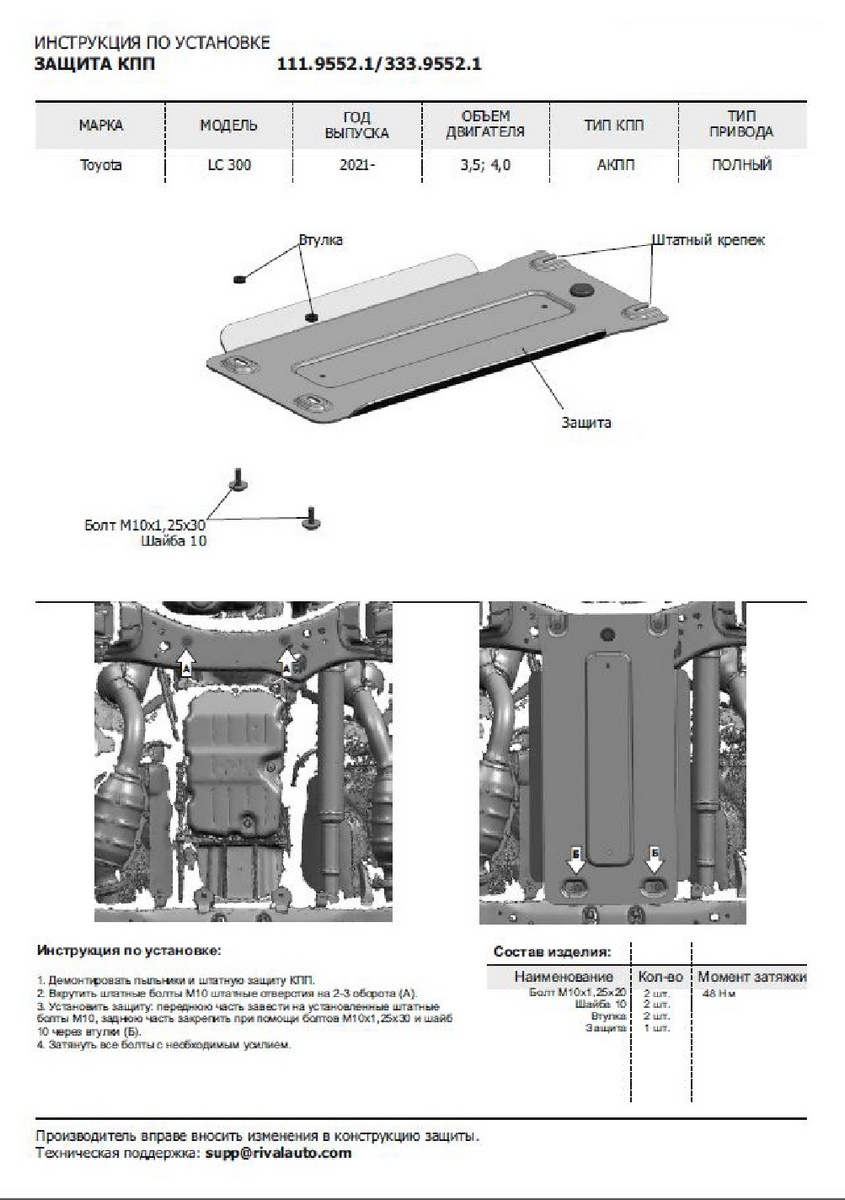 Защита Rival для КПП Toyota Land Cruiser 300 2021-2026. Артикул 111.9552.1