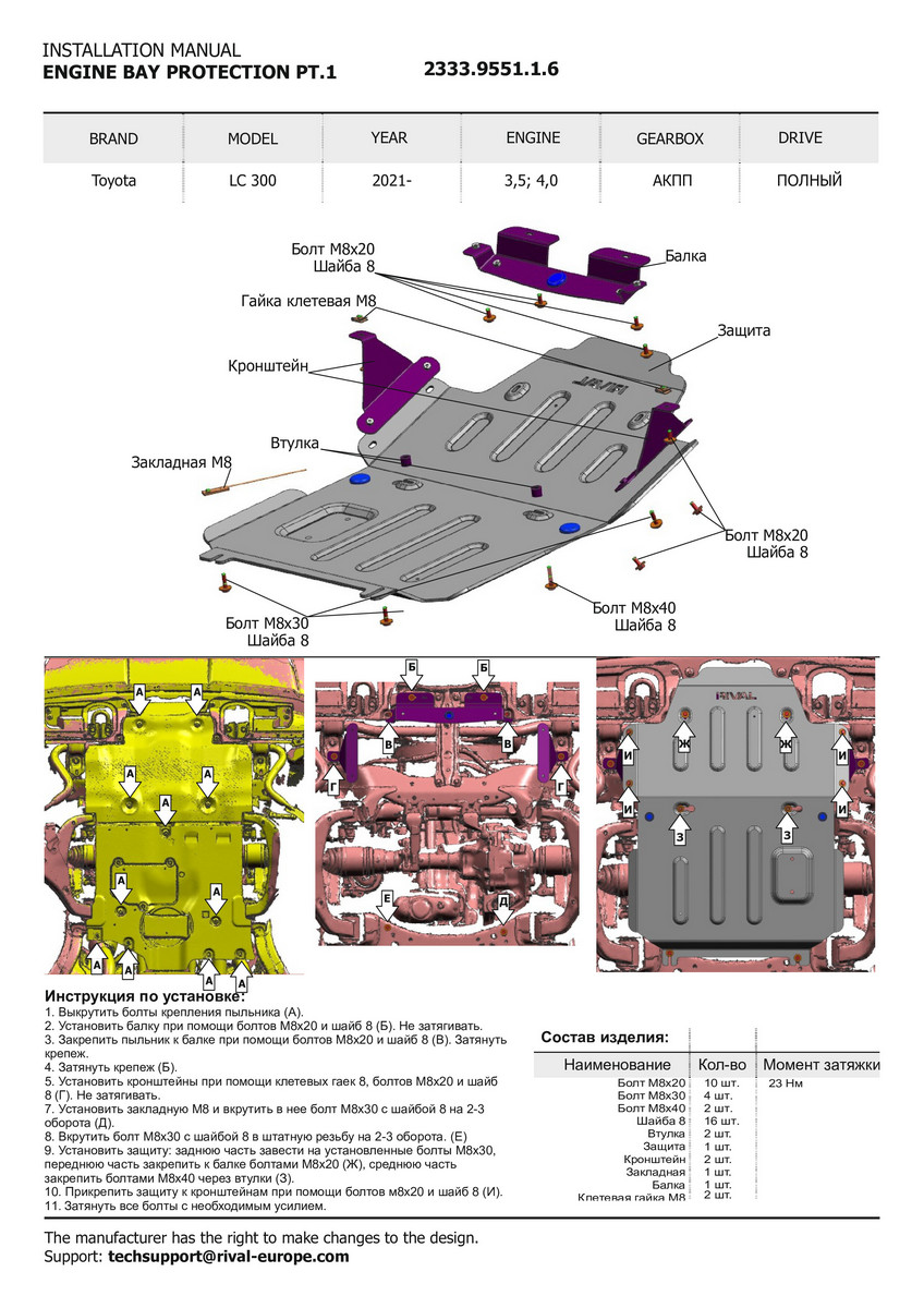 | Комплектация | защита - 1 шт., комплект крепежа, инструкция по установке, упаковка |