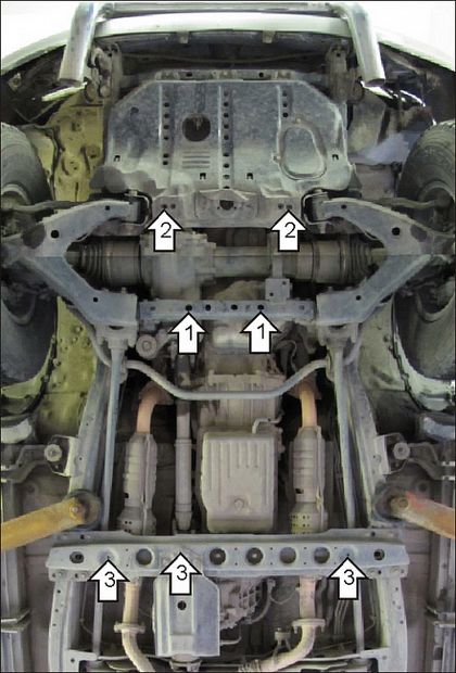 | Cтальная защита "Мотодор" изготавливается из горячекатаной стали, толщиной 2 и 3 мм и из нержавеющей стали, толщиной 3 мм. Изделия покрываются черной порошковой краской, обладающей высокими защитными механическими свойствами.Комплектуются оцинкованным крепежом 8.8 класса прочности. Многие модели имеют отверстия для технического обслуживания двигателя (смена фильтров, слив масла). Элементы крепления защит для внедорожников (кронштейны) усилены ребрами жесткости. | ![]() |