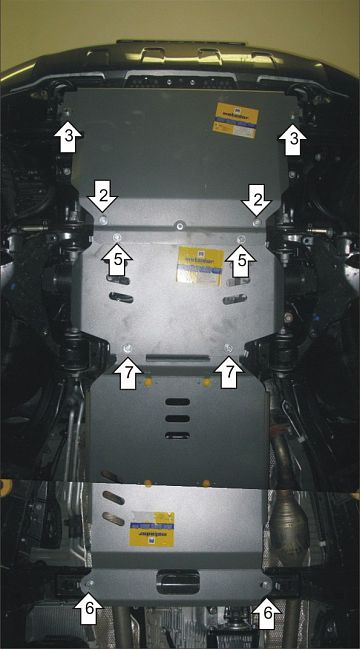 | Cтальная защита "Мотодор" изготавливается из горячекатаной стали, толщиной 2 и 3 мм и из нержавеющей стали, толщиной 3 мм. Изделия покрываются черной порошковой краской, обладающей высокими защитными механическими свойствами.Комплектуются оцинкованным крепежом 8.8 класса прочности. Многие модели имеют отверстия для технического обслуживания двигателя (смена фильтров, слив масла). Элементы крепления защит для внедорожников (кронштейны) усилены ребрами жесткости. | ![]() |