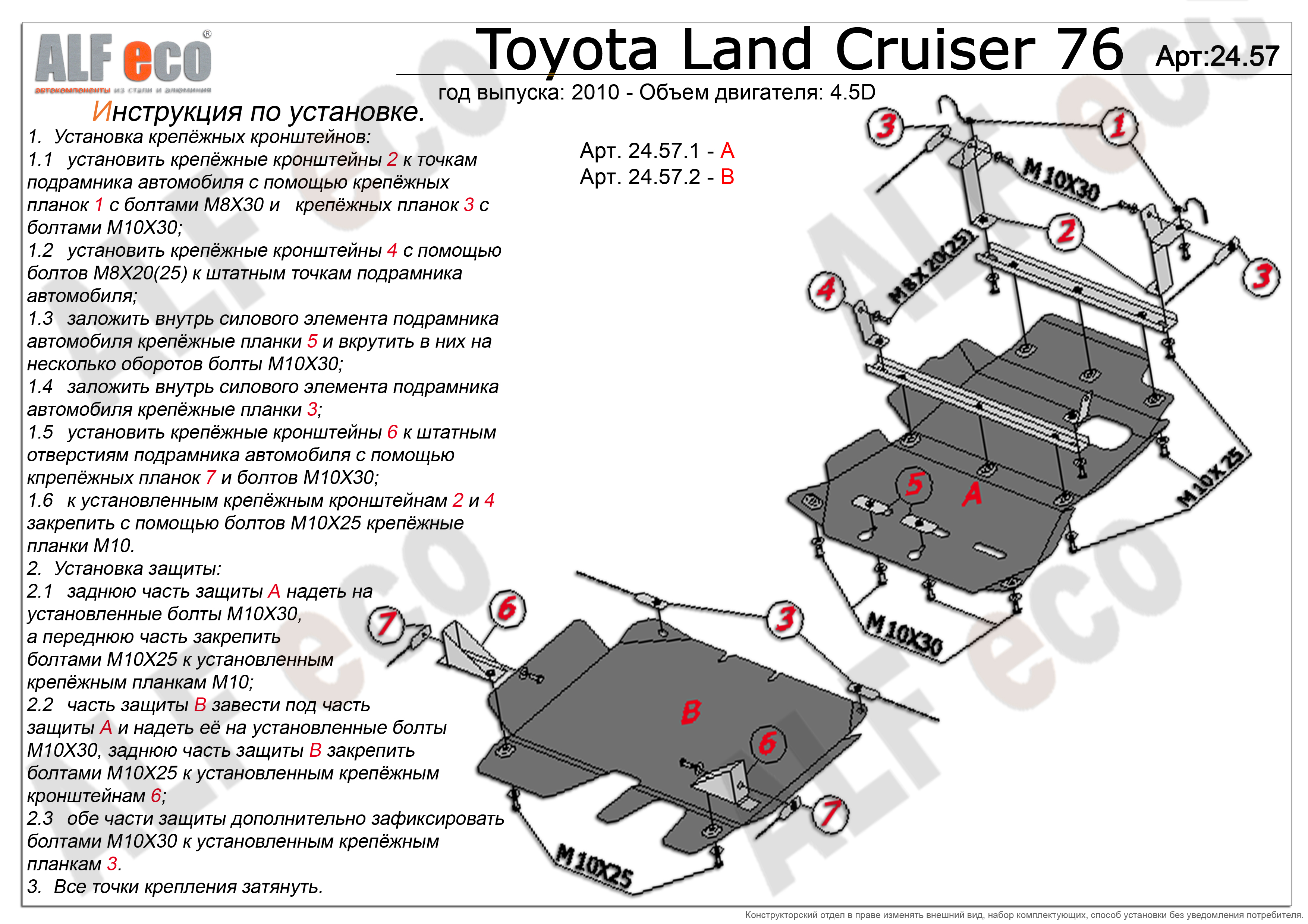 Защита Alfeco для картера, раздатки, КПП Toyota Land Cruiser 76 (J70) 2007-2026. Артикул ALF.24.57