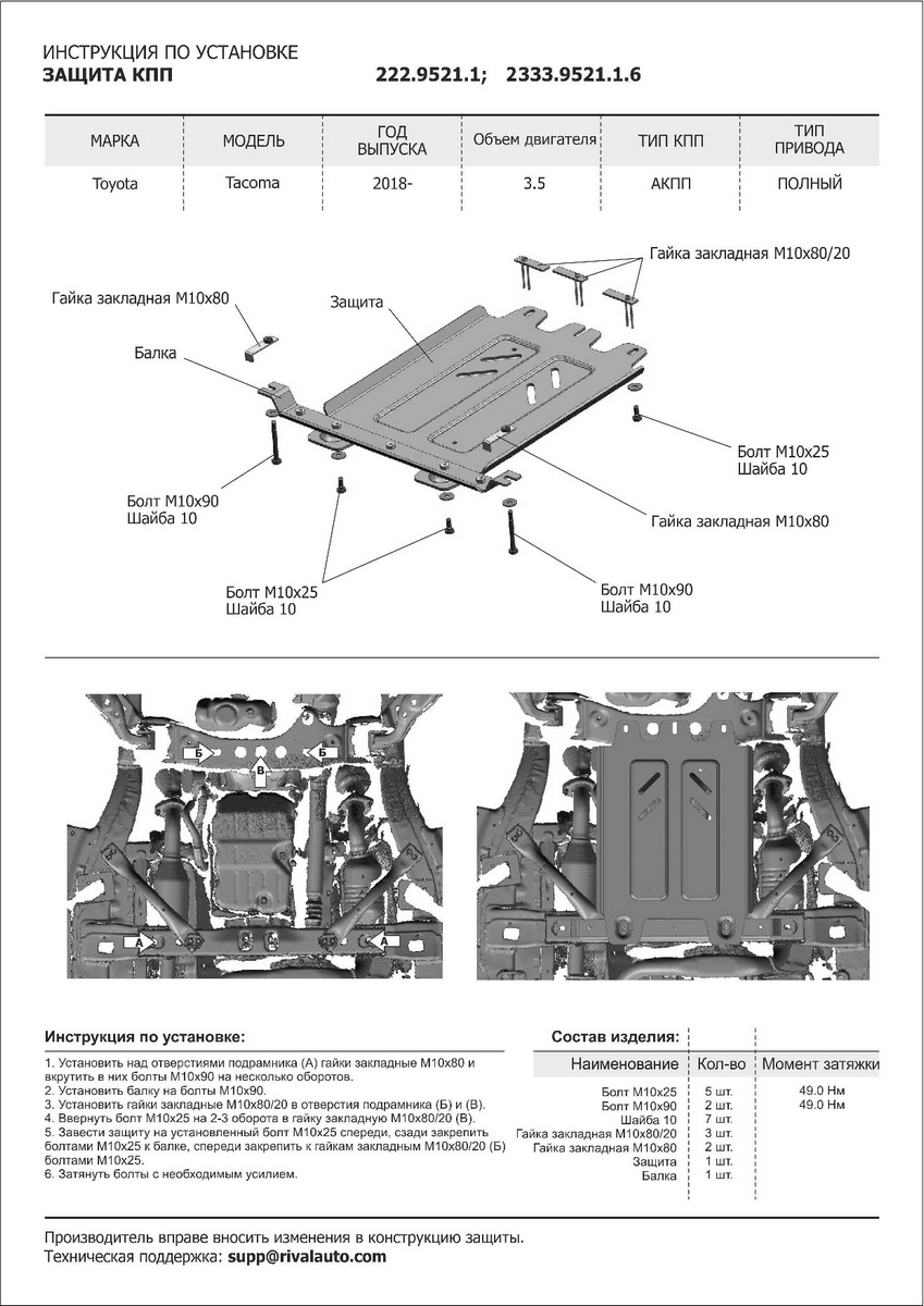 | Комплектация | Защита - 1 шт., упаковка, крепеж, инструкция |